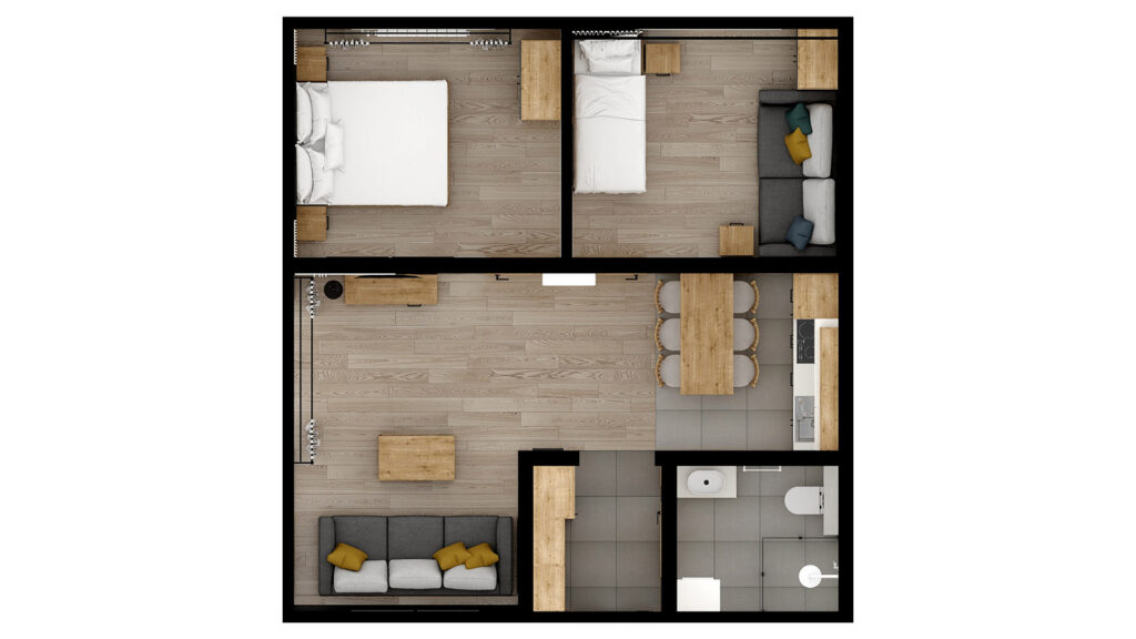 Każdy domek wyposażony jest w klimatyzator. Do dyspozycji Gości jest internet światłowodowy. Goście domków mają również dostęp do znajdującego się na terenie domków jacuzzi, basenu z podgrzewaną wodą, boiska, parkingu oraz rowerów. Dzieci mogą bawić się na z placach zabaw, korzystać z rowerów, hulajnóg i jeździków. Cały obszar, na którym znajduje się kompleks domków i nasz nowy apartamentowiec jest monitorowany i ogrodzony, aby goście czuli się u nas bezpiecznie.