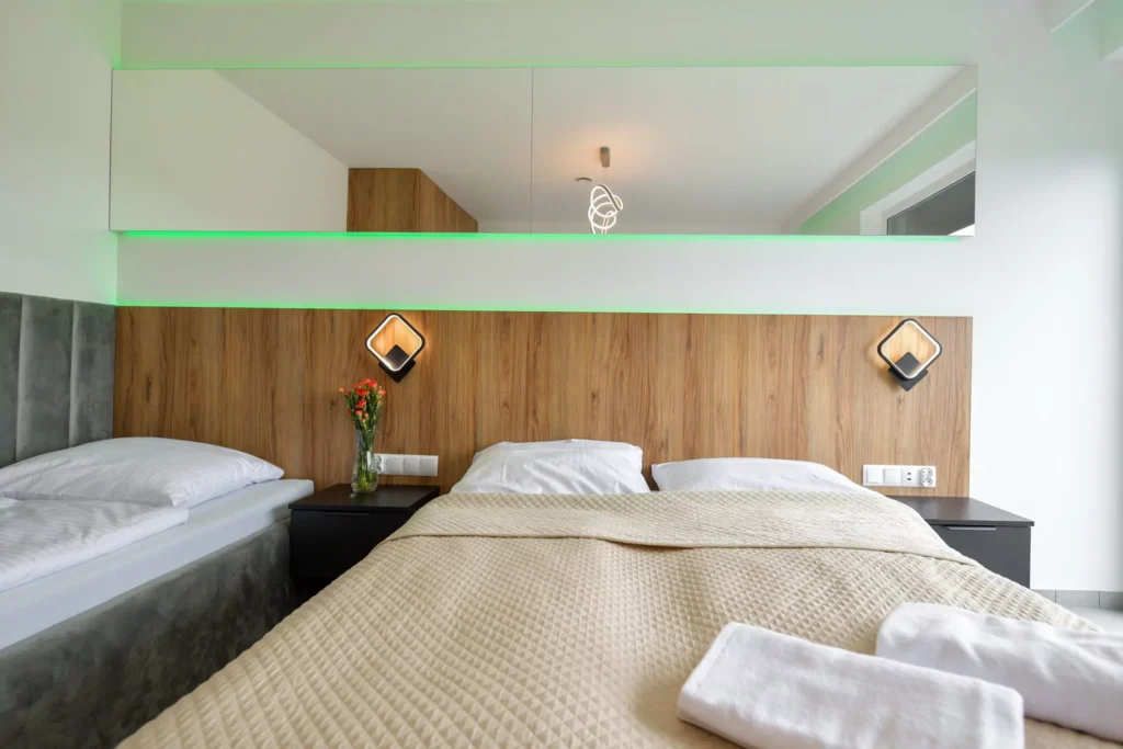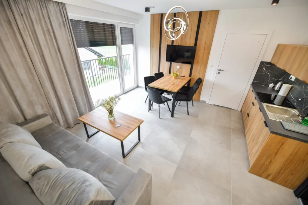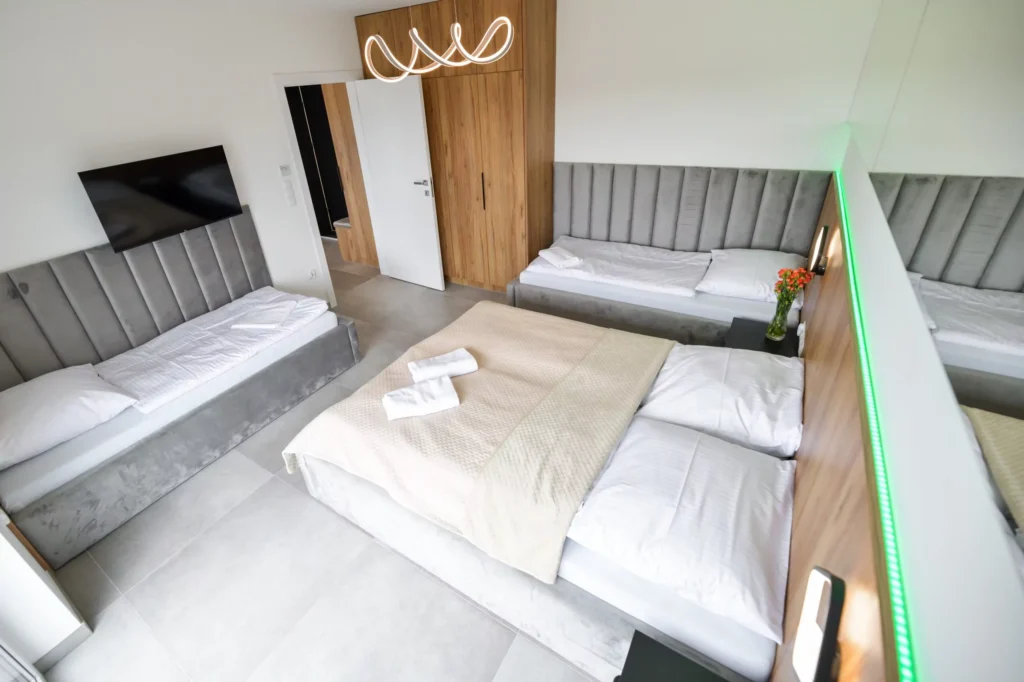 Každý byt je vybavený klimatizáciou. Hostia majú k dispozícii optické pripojenie na internet. Hostia apartmánov majú k dispozícii aj vírivku, vyhrievaný bazén, detské ihrisko, parkovisko a bicykle, ktoré sa nachádzajú v areáli chát. Deti sa môžu hrať na detských ihriskách, využívať bicykle, kolobežky a kolotoče. Celý areál, v ktorom sa nachádza komplex chát a náš nový apartmánový dom, je monitorovaný a oplotený, aby sa naši hostia cítili bezpečne.